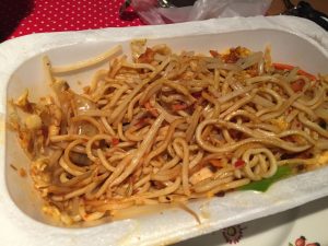 Freitagabend und wieder mal die Frage: „Was essen??“ Irgendwie steht mir der Sinn nach asiatischer Küche. Also fahre ich nach dem Absacker im Falkner’s auf dem Weg nach Hause über den E-damm beim „Mekong“ vorbei. M.E. der beste Asia -Imbiß in Hannover. Seit dem Verschönerungsumbau kann man da eigentlich auch ganz nett sitzen und essen, aber mir steht der Sinn nach takeaway. Also einmal Bahmi Goreng (ich liebe Bratnudeln) und 6 kleine Löllchen mit Soyasauce für vornewech. Es ist nicht viel los, scheinbar auch beim Bringdienst und nach ein paar Minuten bekomme ich meine Mahlzeit gut verpackt für € 7,50 übergeben. Zu Hause angekommen ist alles noch knusprig und frisch. Die Röllchen in vernünftigem Fett gebacken und das Bahmi Goreng mit frischem, knackigen Gemüse und reichlich Fleischeinlage.